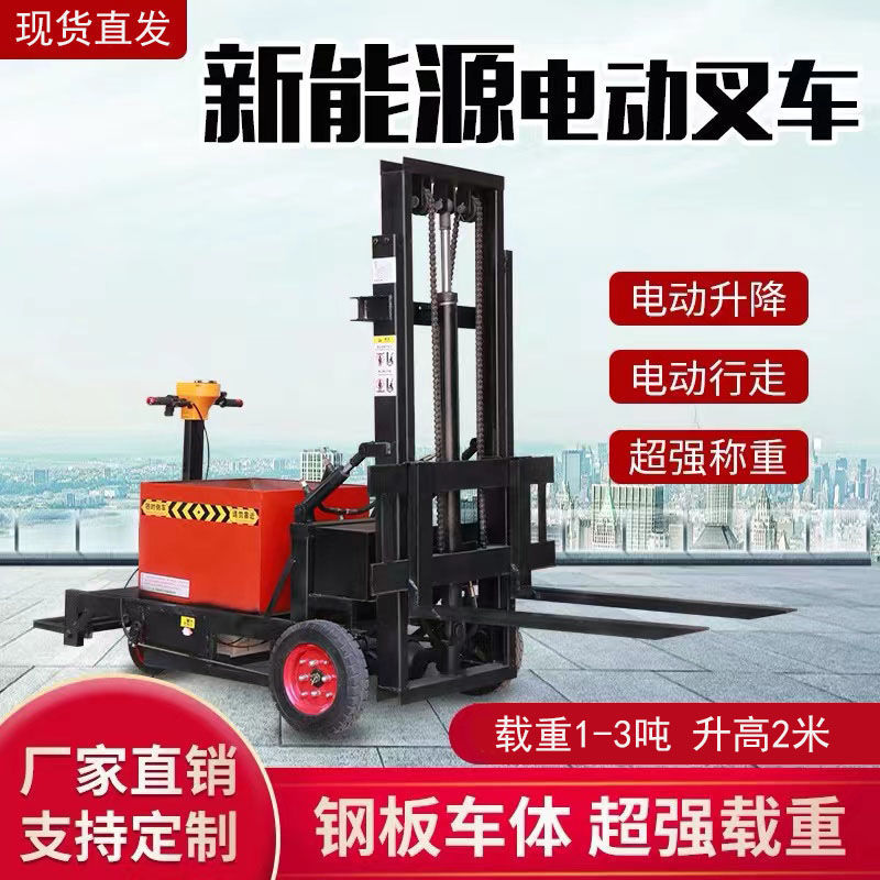 民勤县小型电动叉车1吨站驾式2吨液压升高铲车全自动仓储堆高车